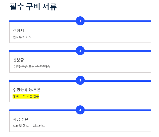 📝 4. 필수 구비 서류 (병역 이력 포함 필수!)