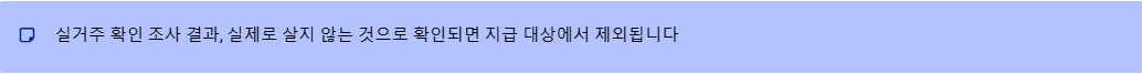 - (주의: 실거주 확인 조사 결과, 실제로 살지 않는 것으로 확인되면 지급 대상에서 제외될 수 있습니다.)