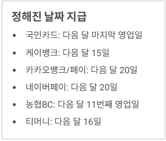 - 국민카드: 다음 달 마지막 영업일