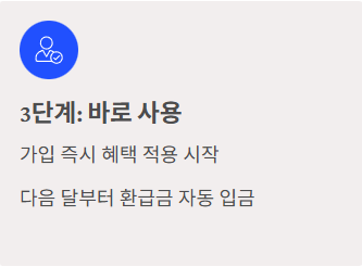 - 주의: 가입하지 않고 카드를 사용하면 환급금이 쌓이지 않으니, 카드 수령 즉시 가입하세요.