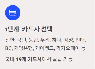 1단계: 19개 카드사 중 선택하여 발급