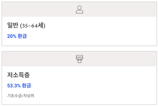 - 일반 (만 35세 ~ 64세): 20% 환급