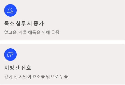 술이나 약물 같은 독성 물질이 들어오면 이를 해독하기 위해 효소가 급격히 늘어납니다.