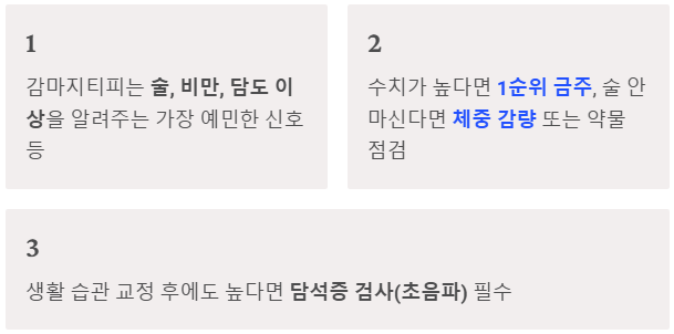 ✅ 3. 감마지티피 수치 높은 이유 및 해결 방법