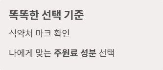 - 반드시 식약처의 '건강기능식품' 마크와 나에게 필요한 주원료 성분을 확인해야 합니다.