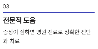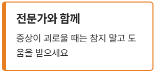 - 증상이 괴로울 때는 참지 말고 전문의와 상의하여 적절한 도움을 받는 것이 현명합니다.