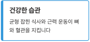- 균형 잡힌 식사와 꾸준한 근력 운동은 뼈와 혈관 건강을 지키는 가장 확실한 방법입니다.