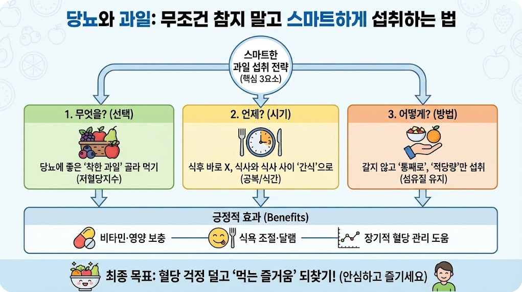 당뇨 관리를 시작하신 분들이 가장 힘들어하는 것이 바로 '식단 조절'입니다. 특히 평생 식후 입가심으로 즐겨 드시던 과일을 더 이상 마음 놓고 드실 수 없다는 사실은 큰 상실감을 주기도 합니다.