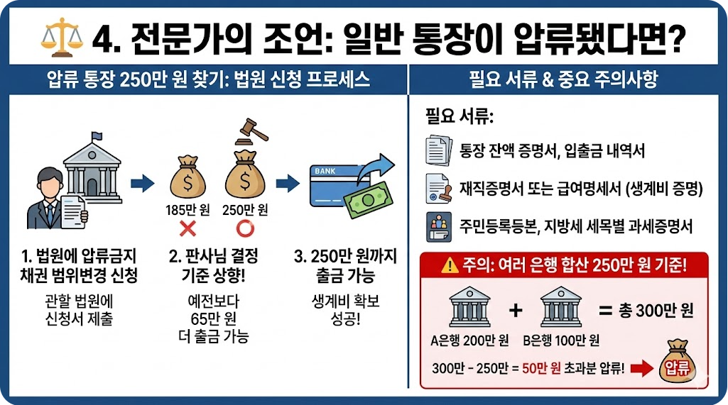 👨⚖️ 4. 전문가의 조언: 일반 통장이 압류됐다면?