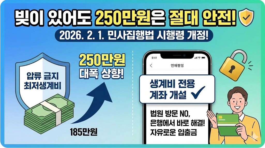 #압류금지최저생계비 #250만원 #생계비계좌 #통장압류 #급여압류 #2026년개정 #민사집행법 #압류방지통장 #채권추심 #법률상식
