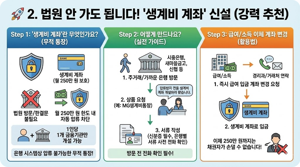 🚀 2. 법원 안 가도 됩니다! '생계비 계좌' 신설 (강력 추천)