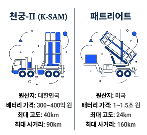 얼핏 들으면 엄청나게 비싸 보이지만, 경쟁 모델인 미국의 패트리어트 미사일과 비교하면 이야기가 다릅니다. 방위사업청 및 군 당국 자료에 따르면, 패트리어트 체계 대비 가격이 약 3분의 1에서 4분의 1 수준에 불과합니다.