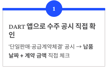 방산 기업은 '수주(계약)'가 곧 생명줄입니다. 스마트폰에 전자공시(DART) 앱을 깔고, 관심 기업의 '단일판매·공급계약체결' 공시가 뜰 때 실제 납품 날짜와 계약 금액을 확인하는 습관을 들이세요.