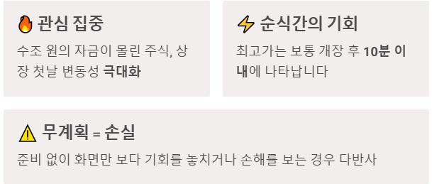 📌 준비된 자만이 상장일에 흔들림 없이 수익을 지킵니다