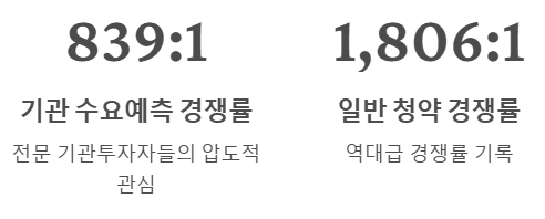 - 일반인 청약 결과: 일반인 대상 청약에서도 무려 11조 7천억 원이라는 막대한 돈이 모였습니다. 경쟁률은 1,806대 1이었습니다.
