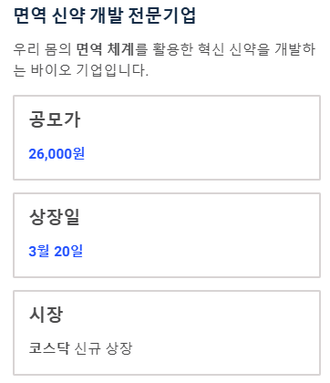 이 회사는 우리 몸의 면역 체계를 다루는 신약 개발 전문 기업입니다. 새로운 약을 개발하기 위해 많은 자금이 필요하여, 이번에 처음으로 주식 시장에 회사를 공개하고 사람들에게 투자금을 모으는 과정을 거쳤습니다. 이것을 흔히 '상장'이라고 부릅니다.