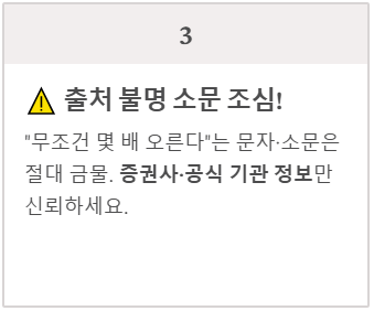상장일이 다가오면 "특정 가격까지 무조건 오른다"는 식의 출처를 알 수 없는 문자메시지나 소문이 돌 수 있습니다. 이러한 불확실한 추측성 글은 절대 배제하시고, 증권사나 정부 기관에서 제공하는 공식 정보만 믿으셔야 합니다.