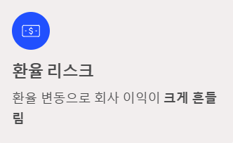 | 투자 단점 | 환율 및 국제 정세에 따라 주가가 하루아침에 급락할 위험 | 매일 주식 창을 확인하기 어려운 분은 주의 |