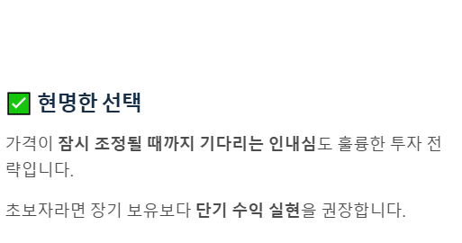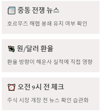 | 핵심 변수 | 중동 지역 긴장 상태 유지 여부, 원달러 환율 방향 | 단기적인 수익을 노리는 소액 투자자 |
