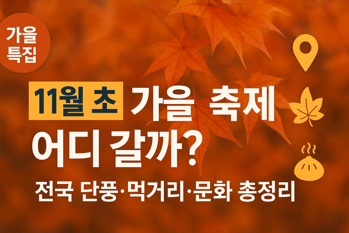 11월 초 전국 가을 축제 일정을 지역별로 정리했습니다. 🍁 단풍 명소부터 전통문화·먹거리 축제까지 한눈에! 서울 근교 단풍 여행, 가족 나들이, 데이트 코스까지 총정리 꿀팁 가이드.