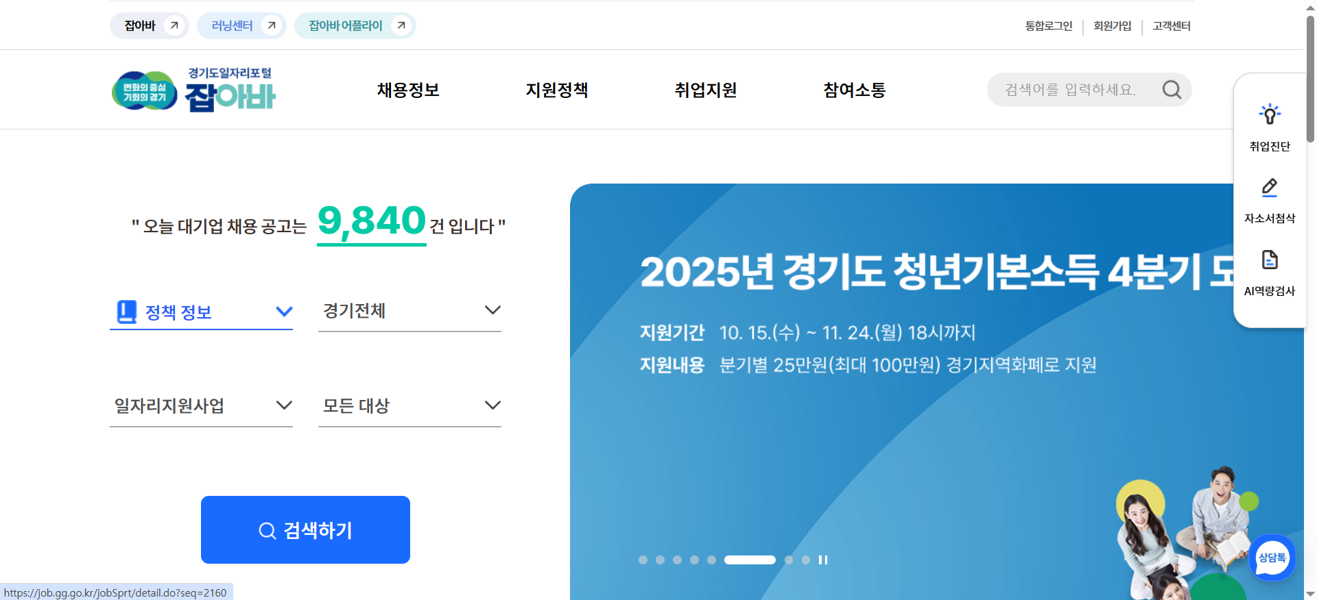 - 신청: 그래서 신청은 경기도의 일자리 통합 플랫폼인 '잡아바 어플라이'에서 일괄적으로 받습니다.