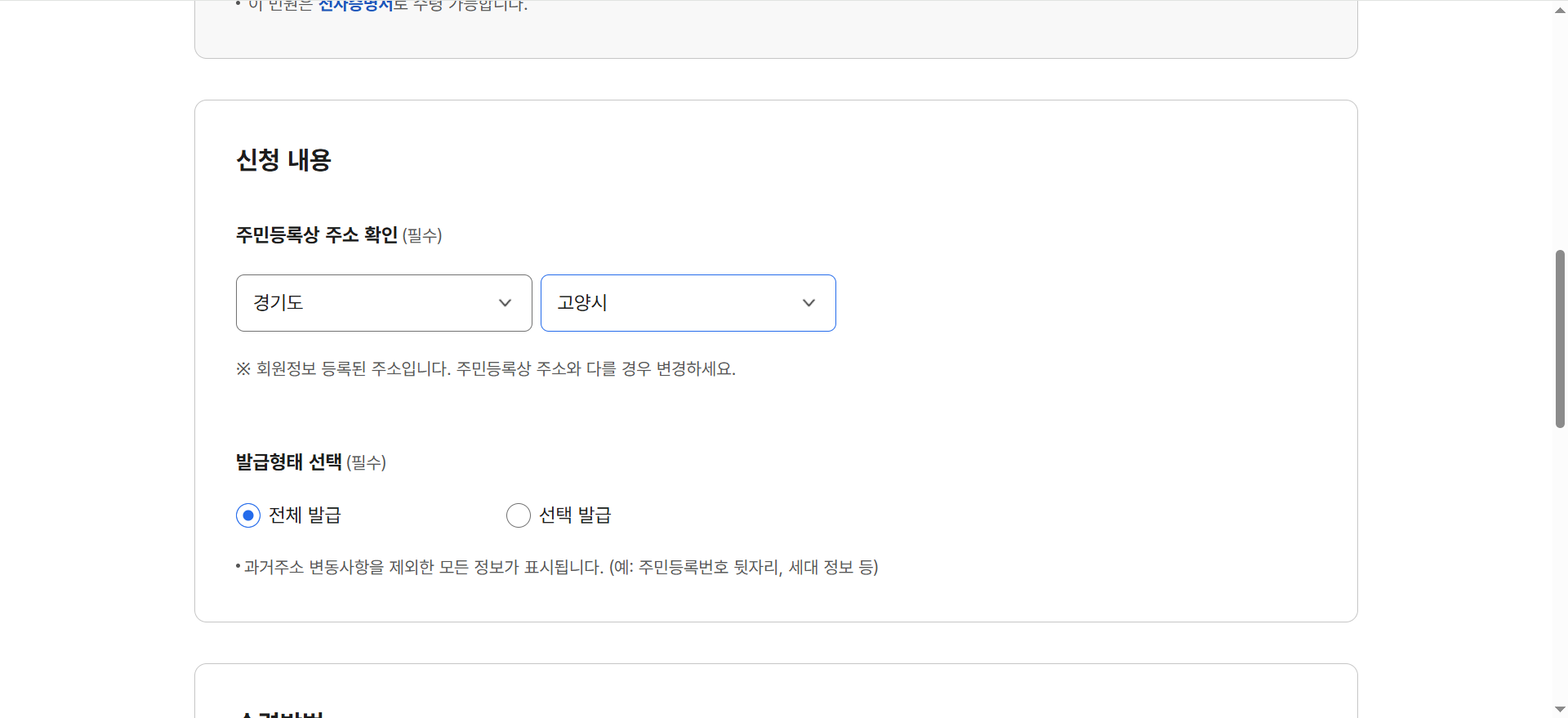 - 1순위: '최근 5년 주소 변동 이력' 포함하여 발급