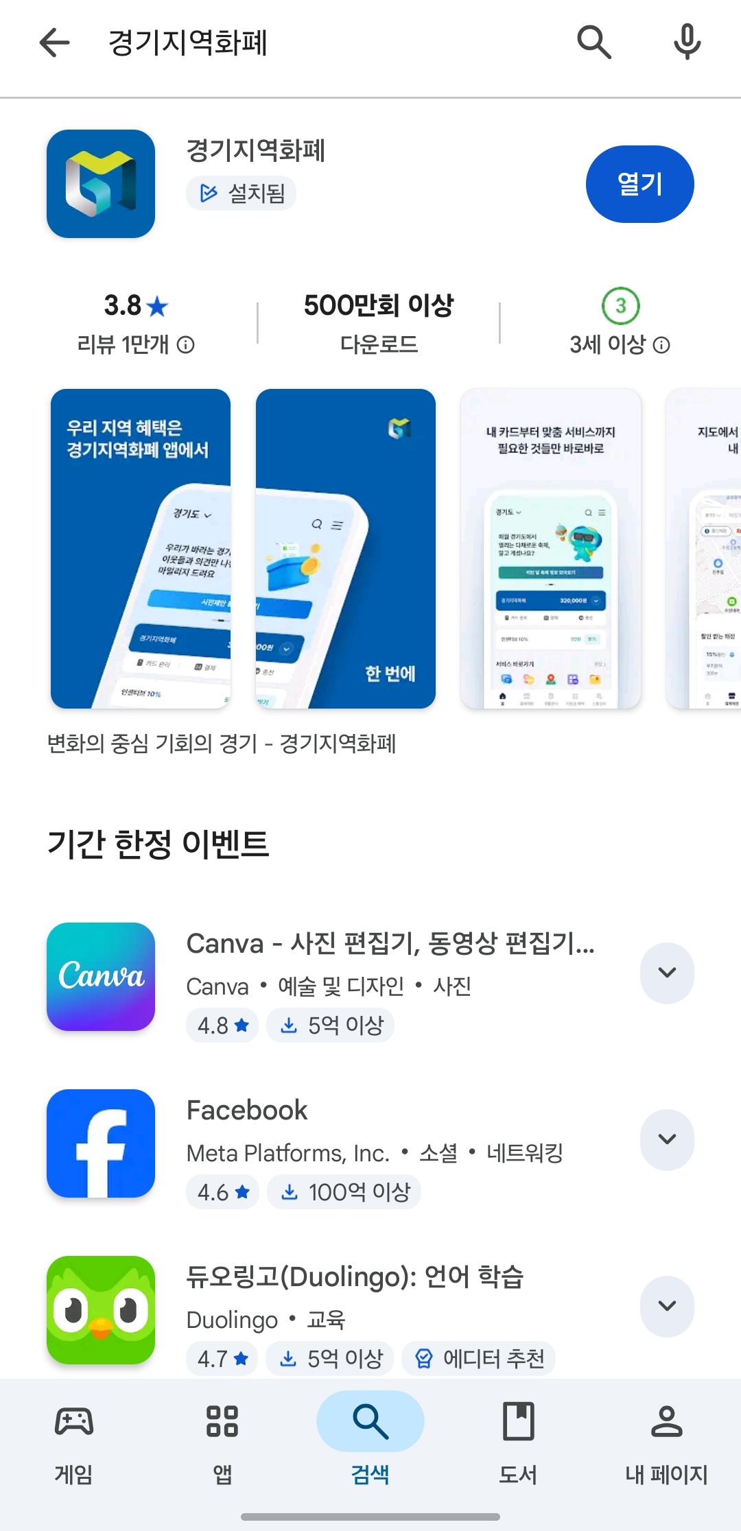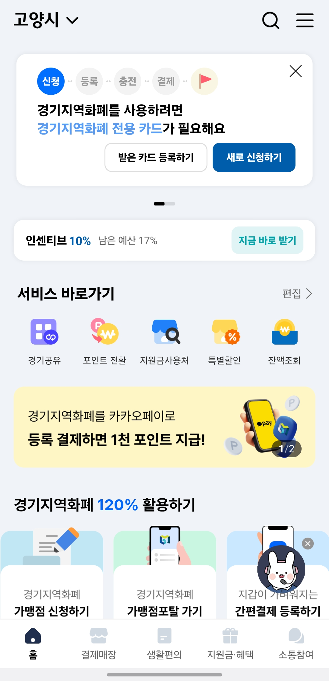 - '경기지역화폐' 앱을 켭니다. (고양페이, 수원페이 등 모든 시/군 공통)